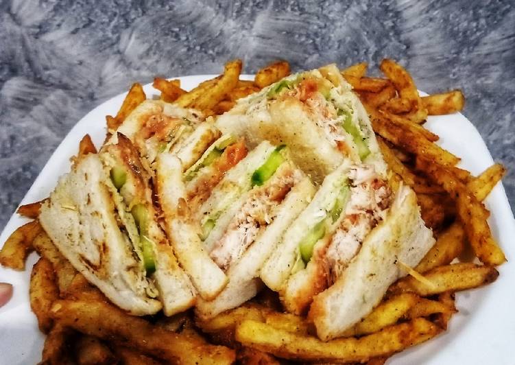 Club sandwiches are usually made from plain white sandwich bread, toasted until it gets crisp. Club sandwich recipe with video & step by step photos - Quick, healthy and delicious tasting vegetarian club Sandwich that can be enjoyed for a brunch, snack or a meal. Today's sandwich is the "California Club with Chipotle Mayo." It combines turkey, Swiss cheese, bacon, spinach, tomato, avocado, a fried egg, and chipotle mayonnaise…Continue Reading. You can create Club sandwich using 6 ingredients and 5 steps. Here is how you create that.