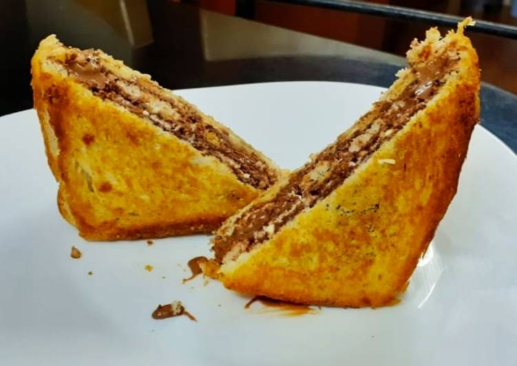 - Sandwich each slices. Then heat a pan, melt the butter. Place the chocolate sandwich on the pan until light brown..