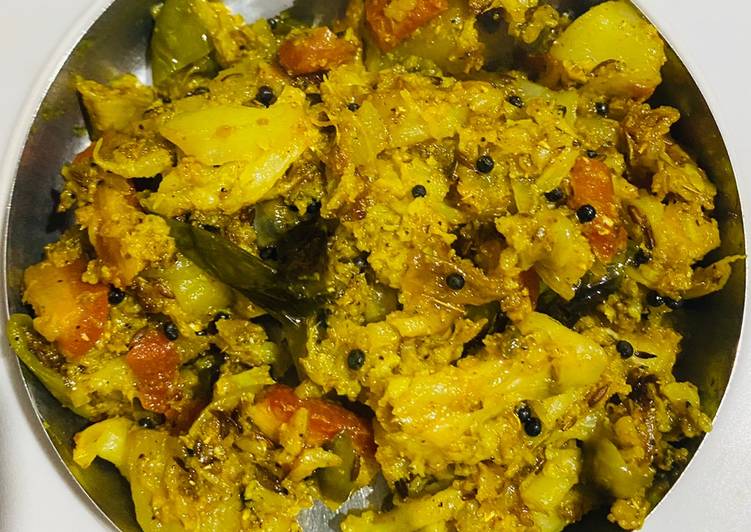 - Heat oil in a pan add mustard, cumin seeds, bay leaves, cloves and black pepper. Saute it, now add all the vegetables. Cook it on low medium flame, cover the pan with lid..